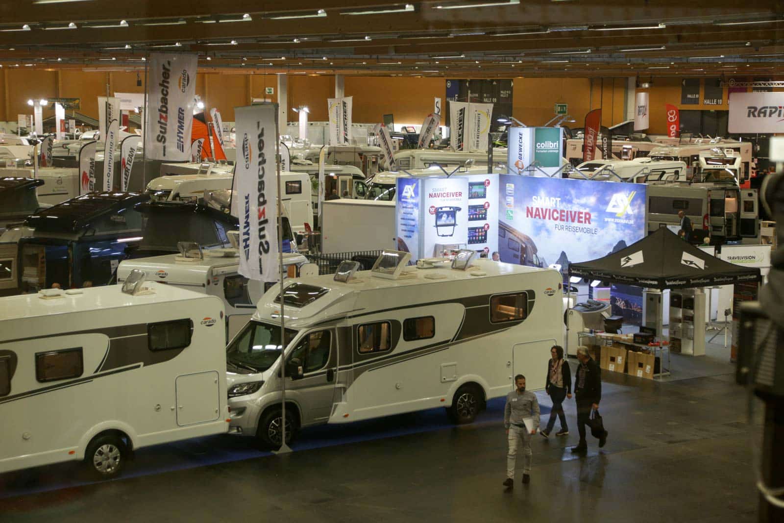 Ein Blick von oben zeigt, worum es dieses Jahr in Wels ging: das Reisemobil. Der überwiegende Teil der Ausstellungsflächen war Wohnmobilen, Camper-Vans, Kastenwagen und ausgebauten Mini-Vans gewidmet.