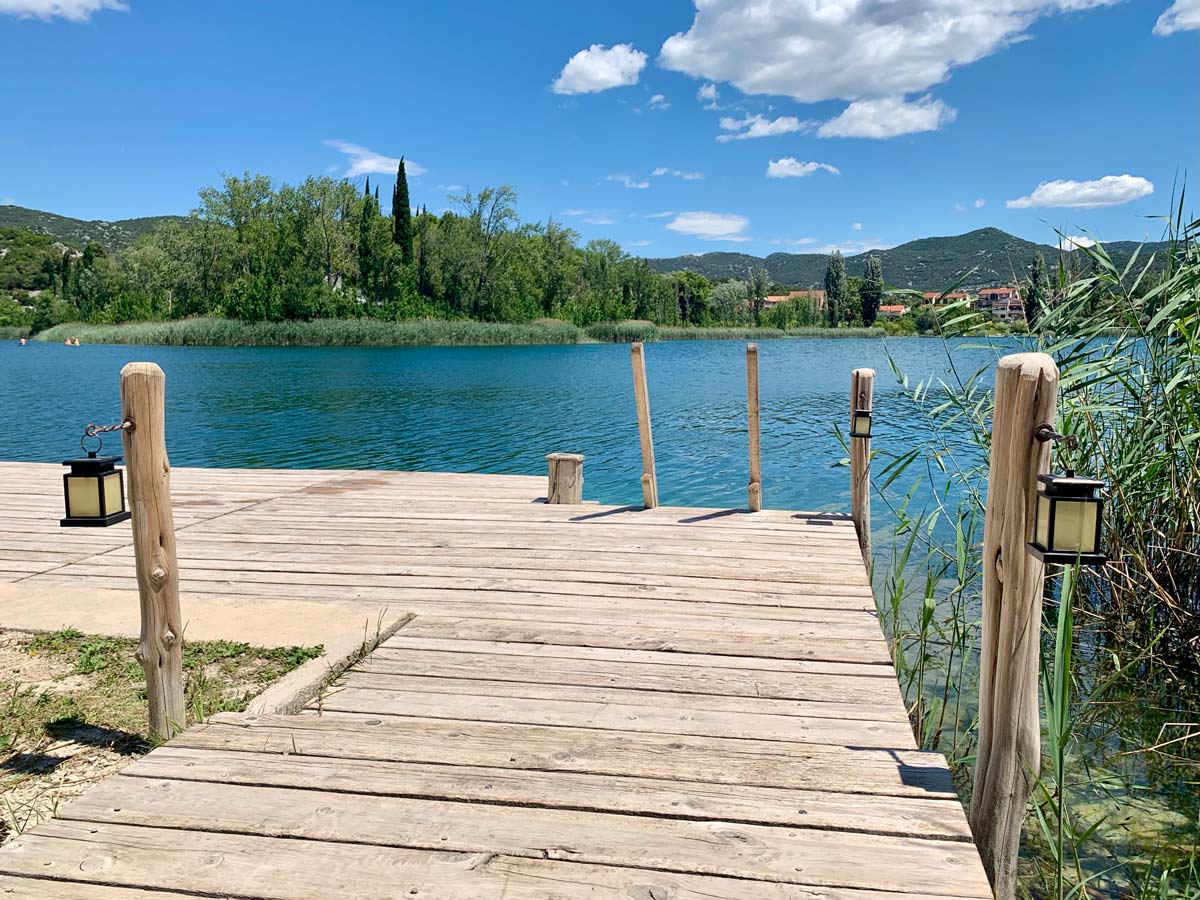 Wer auf eine Fährverbindung auf die Halbinsel Pelješac wartet oder kurz vor der neuen Brücke noch eine Pause braucht, sollte sich eine oder zwei Nächte am See gönnen. Auch die Fahrt nach Dubrovnik lässt sich so angenehm unterbrechen. Auch wenn die Sehnsucht nach dem ersten Planschen im Meerwasser groß ist: Ein erfrischendes Bad in diesem türkis-grünen See entschädigt allemal. Das Wasser ist herrlich klar und angenehm kühl. Die Seen sind praktisch unverbaut und bieten eine traumhafte Kulisse. Sein Camp schlägt man bei Camping Baćinska Jezera auf und kann direkt von seinem Standplatz aus den Steg in den See benutzen.