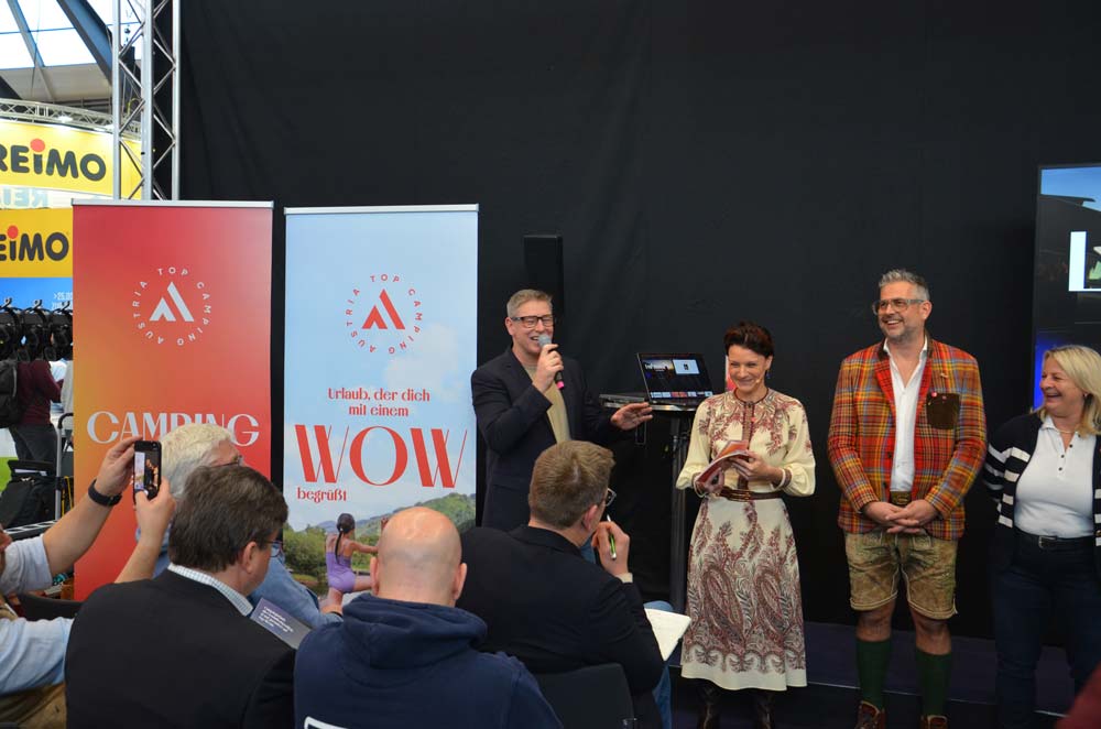 Zwölf österreichische Camping-Unternehmerinnen und -unternehmer, die sich als „leidenschaftlich engagiert für das WOW ihrer Gäste“ verstehen, setzen auf ihre geballte Kraft an ehrlicher Campingqualität und präsentierten dies auch auf der CMT 2026. Alle zwölf Campingplätze waren beim Presse-Event vertreten – entweder auf der Bühne oder im Publikum. Vorgestellt wurde nicht nur die neue Verpackung, sondern allem voran das Selbstverständnis und der Qualitätsbeweis: Ab sofort sollen Camping-Fans einmal deutlicher versichert sein, dass dort, wo Top Camping Austria draufsteht, ihr WOW garantiert ist.